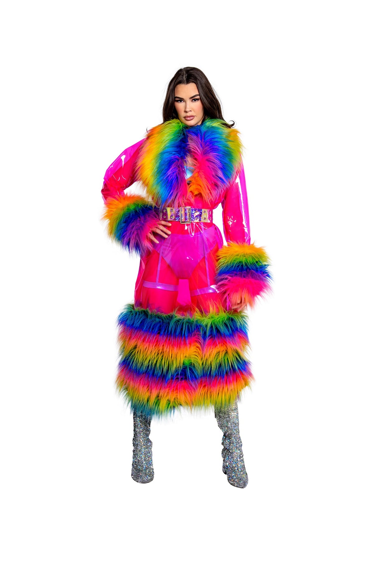 PVC Vinyl/Acrylic Faux Fur, Holographic Vinyl Belt